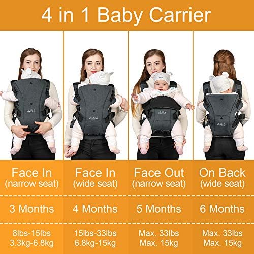 JooBebe Baby Carrier 4-in-1, Cotton, Ergonomic & Comfortable Adapted to Your Child’s Growing, for Newborn and Toddler 4 to 36 Months(8lbs – 33lbs)