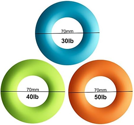 Jwqidi 3Pcs(30/40/50LB) Silicone Hand Strengthener Grip Rings Exerciser Therapy Balls Perfect for Increasing Hand, Finger, Wrist, and Forearm Strength