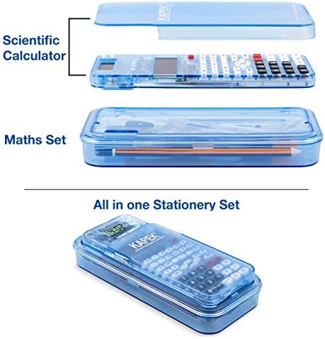 KAPEK Maths Set and Scientific Calculator Bundle. This Patented School Calculator and Geometry Set is the perfect all in one stationery set for secondary school – Blue