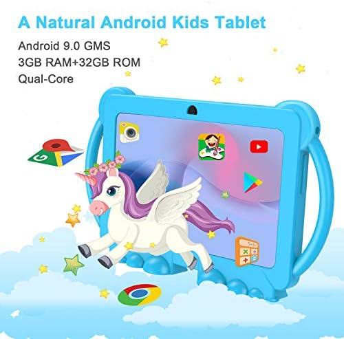 Kids Tablet 7 inch, Android 9.0 GMS Tablet PC for Kids, 3GB Ram 32GB Rom, Kids Edition Tablet with Parental Control, Dual Cameras, Wi-Fi, Blue Kid-Proof Case