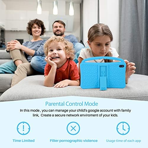 【Large Storage &Newest System】 :This kids tablet with quad-core CPU and latest Android 10.0 operating system, enjoy the brilliant 7inch full HD display, faster processor, 2GB RAM +32 GB storage and long lasting 2500mAh battery,enhanced Wi-Fi, and immersive audio, and up to 12 hours of reading, browsing the web, video watching, and music listening.