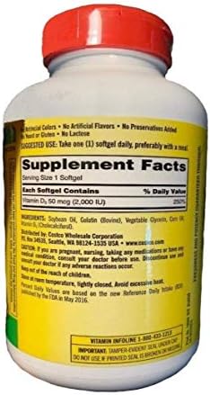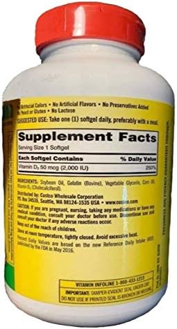Kirkland Signature Vitamin D3 helps to maintain and support normal bones, teeth and muscle, while also contributing to normal function of the immune system. If you are not completely satisfied with this Kirkland Signature product, your money will be refunded. 600 Capsules 50μg (2000 I.U) 20 Months Supply Suggested Use: Take one softgel capsule with a drink daily, preferably at meal times. Do not exceed the stated dose or take additional vitamin D supplements without seeking medical advice. Caution: If you are pregnant, breastfeeding or taking any medications, consult your doctor before use. Discontinue use and consult your doctor if any adverse reactions occur. Not suitable for children. Food supplements should not be used as a substitute for a varied diet and healthy lifestyle. Please note that we are unable to ship to the Channel Islands, Post Office boxes and BFPO. Further postcode delivery restrictions might apply to this item.