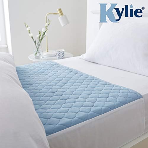 Kylie Premium Bed Pads | Blue | 2 Litre | Single Bed 91 x 74cm | Washable Absorbent Incontinence Sheets | Waterproof Backing | 50cm Mattress Tuck Flaps on Each Side