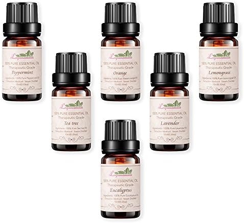 Lagunamoon Aromatherapy Essential Oils Set includes 6 most popular oils:Lavender, Tea Tree, Peppermint, Eucalyptus, Lemongrass, Orange. All our oils are 100% pure and natural offering a huge variety of applications and benefits.