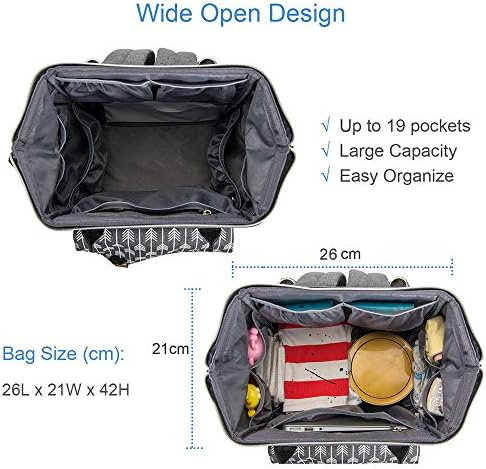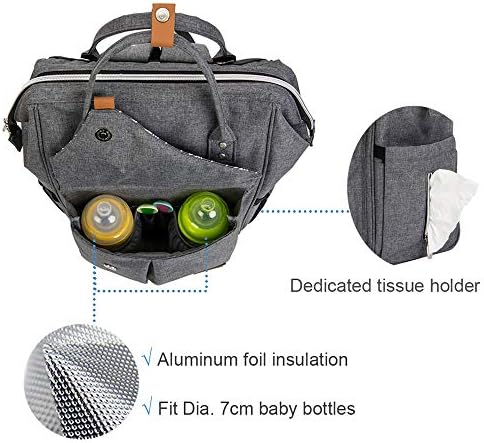 Spacious & Functional: 23 litters & 19 pockets, include 1 side tissue pocket, 2 quick reach insulated milk bottle pockets on the front, waterproof pocket for wet clothes or diapers, etc.