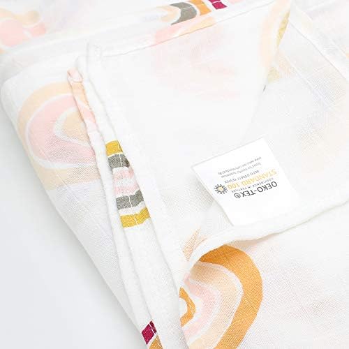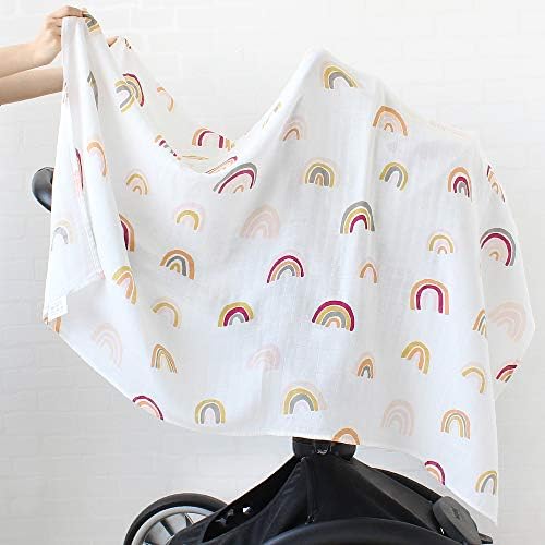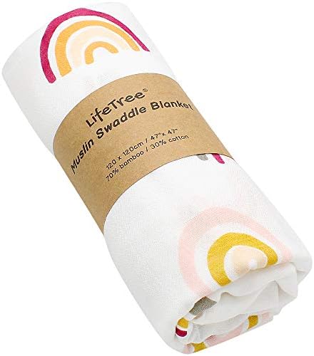 LifeTree Baby Muslin Cloth – Soft Large Baby Muslin Swaddle Blankets – Bamboo Cotton, Rainbow Print, Lightweight, Breathable, 120 x 120cm