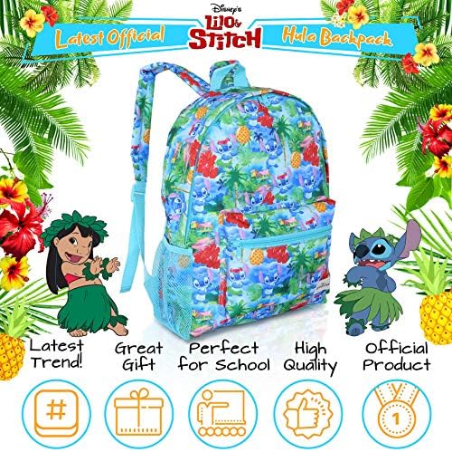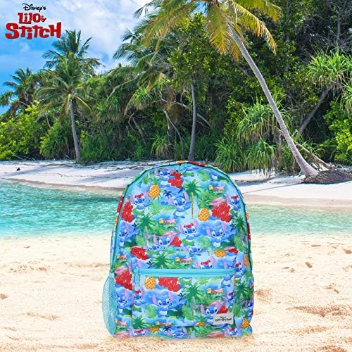 Lilo and Stitch Bag Backpack, Back to School Disney Gifts, Blue Rucksack for Girls, Teens, Women Featuring All-Over Tropical Stitch Print for School Or Travel