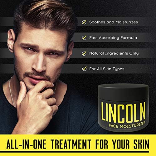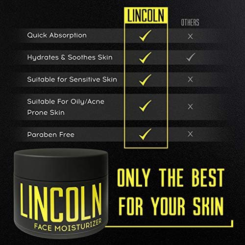 LINCOLN Face Moisturiser For Men – Mens Moisturiser For Acne Prone Skin – Natural Mens Face Moisturiser For Oily Skin & Sensitive Skin Hydration – Face Moisturiser Men For Natural Men Skincare, 100 g