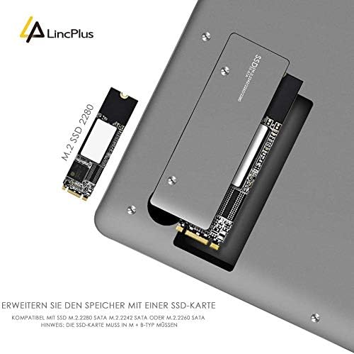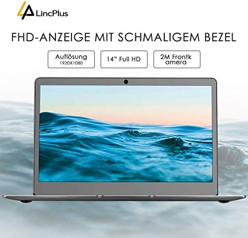 LincPlus P2 14″ Slim Metal Laptop with Windows 10, Intel Celeron N3350 4GB RAM 64GB eMMC Storage Upgradeable by SSD, Full HD Fanless quiet Notebook with QWERTY UK Keyboard