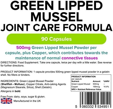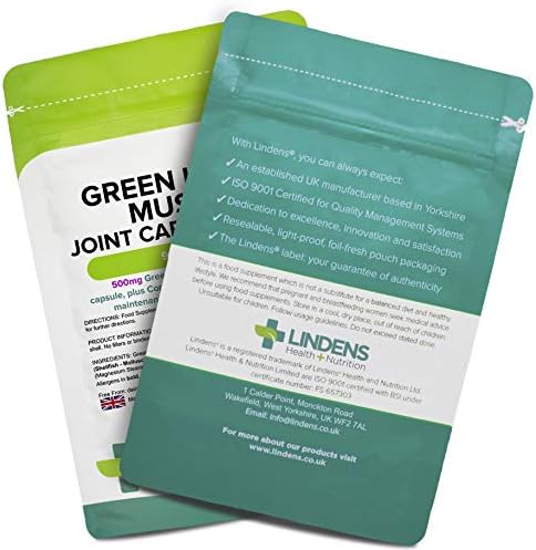 Lindens Green Lipped Mussel 500mg Capsules – 90 Pack – Joint Care Formula in Convenient, Rapid Release Capsules – UK Manufacturer, Letterbox Friendly