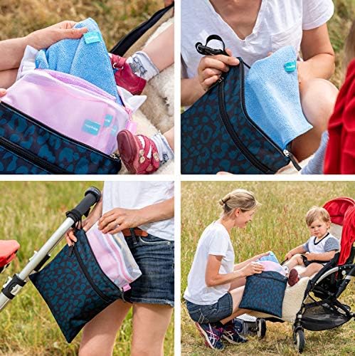 PERFECT FOR ON THE GO: every element has been custom sized to fit perfectly inside your waterproof wet bag. Simply pack your wipes and spray bottle in the front pocket and move to the labelled laundry bags in the back pocket when dirty – blue for bottoms, pink for hands. Pop laundry bags straight into washing machine and clean without ever having to touch a dirty wipe