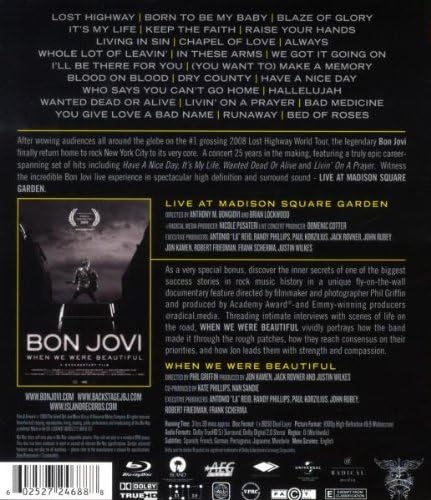 One of the world’s biggest and best live bands release an incredible document of their return to Madison Square Garden, New York City’s most iconic venue. 19 years to the day after the band first performed there, they returned to the same stage for the last date of their historic Lost Highway tour, officially the biggest tour on the planet in 2008. Created by award winning Director, Anthony M. Bongiovi and shot with 23 High Definition cameras, Live From Madison Square Garden features a career spanning set list including “Have A Nice Day”, “Always”, “Wanted Dead Or Alive”, “Livin’ On A Prayer” and even a cover of Leonard Cohen’s “Hallelujah” that Cohen himself rates as his favourite version. This is a snapshot of a band 25 years into a record breaking career and still hitting their peak in the live arena.