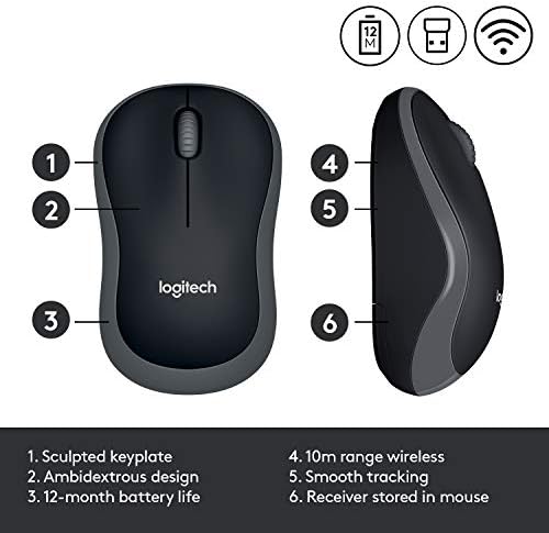 Logitech M185 Wireless Mouse, 2.4GHz with USB Mini Receiver, 12-Month Battery Life, 1000 DPI Optical Tracking, Ambidextrous PC / Mac / Laptop – Grey