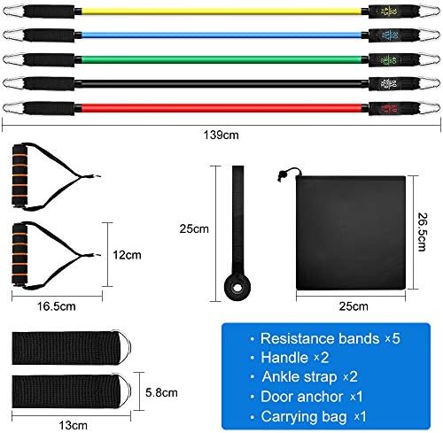 High quality accessories: Exercise resistance bands has six accessories: 2*handles, 2*ankle strap, 1*door anchor, 1* carrying bag. High quality nylon webbing; Double-layer reinforced metal ring; High quality foam handle, non-silp.