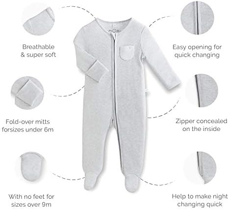 MORI Zip-Up Sleepsuit, 30% Organic Cotton & 70% Bamboo, available from newborn up to 2 years