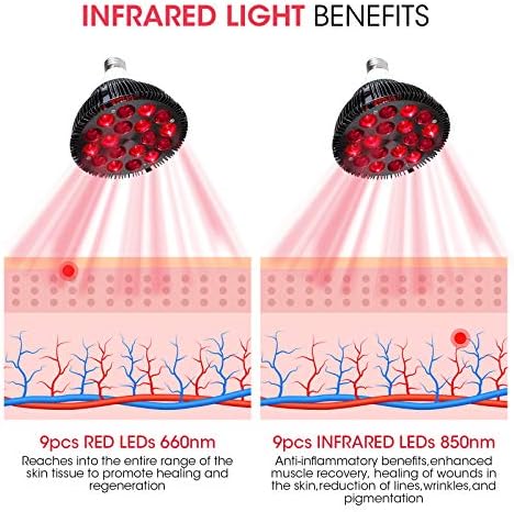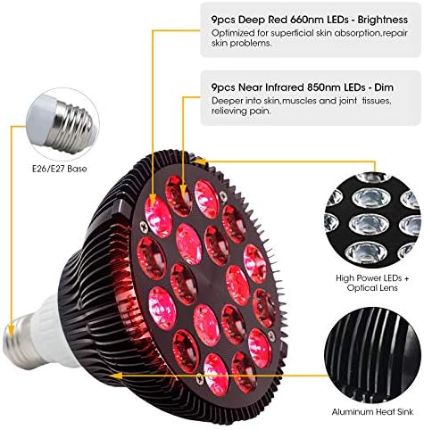 💪【Easy to Use and Durable】: Infrared heat lamp meets standard E26/E27 socket, 100~240V AC, Easy to set up and use. Enjoy light therapy at home, whenever you want to. The high power led light therapy bulb has built-in qualified heat sink for better heat dissipation, durable to use.
