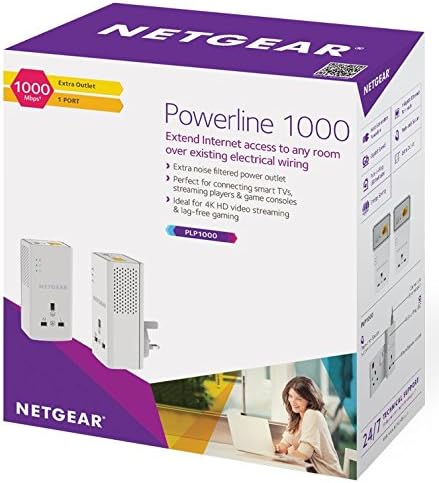 NETGEAR PLP1000-100UKS 1 Port,1000 Mbps, 1 Gigabit Port Powerline Adapter with Extra outlet – Pack of 2