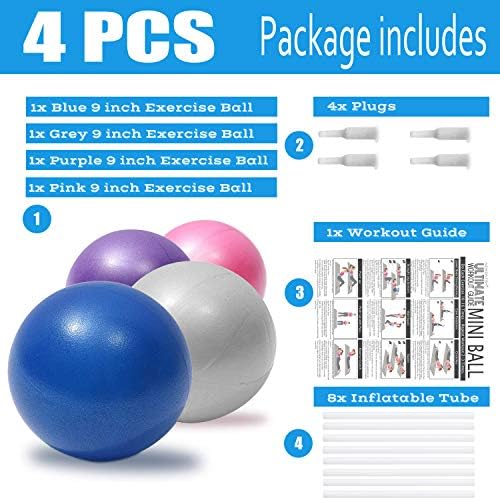 ?Pilates Core Ball? Pilates exercise ball are made of soft, low-odor, flexible, durable PVC. 9 inches mini exercise ball design for your pilate core course- Perfect for fitness like Lower Body Strengthening,Straight Leg Scissors,Push-up,Core Rotations,Wall Squat,Push-up with Pass,Crunches,Squats and Reverse Crunch.