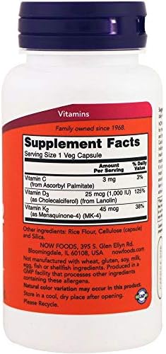 Now Foods combines two nutrients extensively researched for their contribution to the health of bones, teeth and the cardiovascular system. Vitamin D3 promotes calcium transport and absorption. Recent studies indicate that vitamin D3 may play a role in proper insulin action and glucose metabolism and has an important function within the immune system. Vitamin K is critical for the formation of a healthy, strong bone matrix. Vitamin K’s role in arterial health revolves around its ability to support proper calcium metabolism in vascular structures. Vitamin K2 is a readily active and biologically available form of vitamin K. Comes 120 veg capsules in a jar.