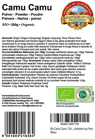 Organic Camu Camu 12% Natural Vitamin C Powder 200g, from Peru, Pure, No Additives