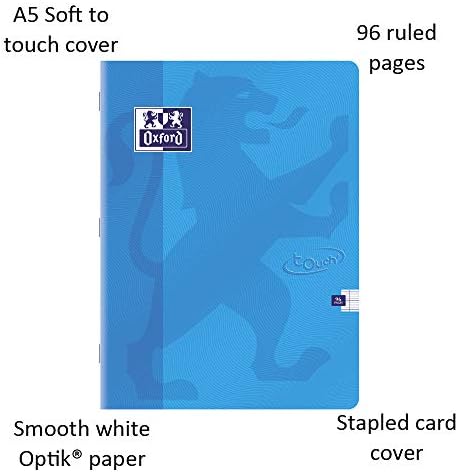 Oxford Touch, Exercise Books A5 Lined, A5 Notebooks, 120 Page, Assorted, Pack of 3