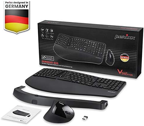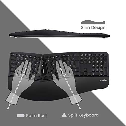 Perixx Periduo-605, Wireless Ergonomic Split Keyboard and Vertical Mouse Combo, Adjustable Palm Rest and Membrane Low Profile Keys, UK QWERTY