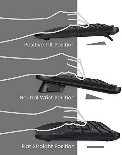 The tilt scroll wheel of the keyboard can be tilted 4 ways for page navigation (up, down, left, and right). Additionally, comes with a built-in tilted foot stand to adjust the height to suit your arm positions.