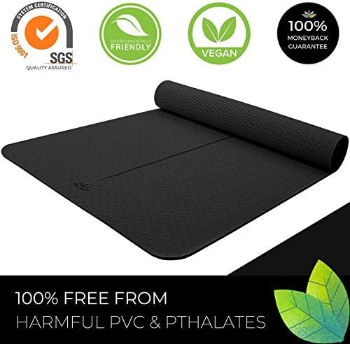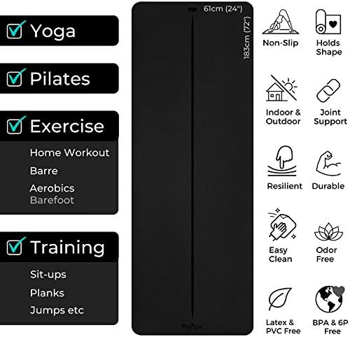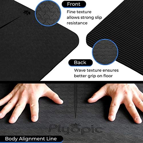 Plyopic Eco Yoga Mat with Alignment Line | Non-Slip, Eco-Friendly Exercise Mat for All Types of Yoga, Pilates, Barefoot Training, Workouts, Exercise and Fitness. 6mm Thick. Incl. Carry Strap