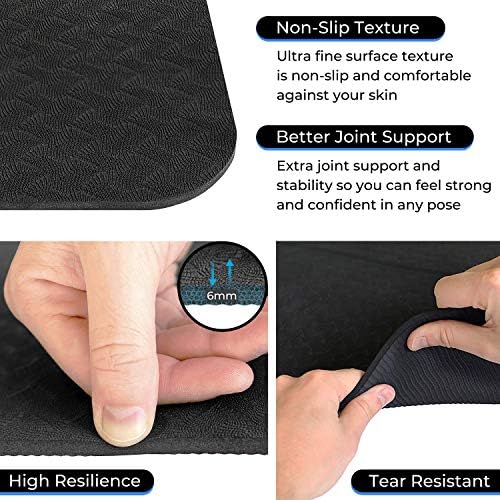 OPTIMUM THICKNESS – Protect your knees and joints without compromising your stability. With a high density 6mm thick construction, you’ll feel more comfortable and grounded on your mat than ever before!
