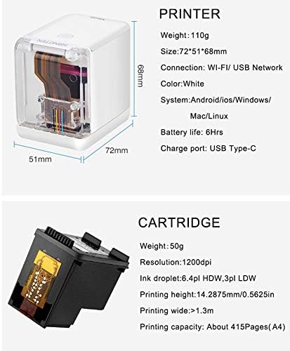 5.Convenient to Carry: a ergonomic design that fits naturally in your hand. It is an ultra-small type and easy to carry. You can slip it into your pocket or handbag for easily printing anywhere