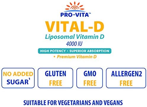 PRO-VITA Liposomal Vitamin D – High Absorption | Essential Phospholipids | for Healthy Bones, Teeth, Heart & Immune Support, Non-GMO, Alcohol-Free, No Artificial Preservatives (4000 IU x 30 Sachets)