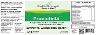 Probiotic 14 Tablets – for Digestive and Colon Cleanse, Weight Loss Support, Immune System Booster | 120 Veggie Capsules – Good Health Naturally