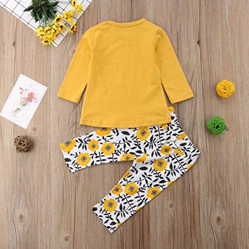 puseky Toddler Baby Girls Cute Letter Print Long Sleeve Shirt Floral Pant Tracksuit Outfits Set