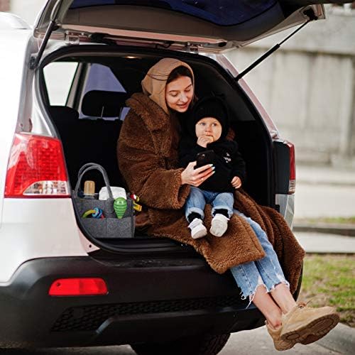 All baby accessories can be stored in this felt organiser clearly and within easy reach. 11 compartments can hold diapers, swaddles, bottles and creams for your newborn. The compartment size in the interior of the changing basket can be individually adjusted to your needs thanks to the removable dividers. Equipped with 2 handles, the changing organiser can be carried comfortably. This also makes it ideal as a boot storage in the car or decorative felt bag in the living room.