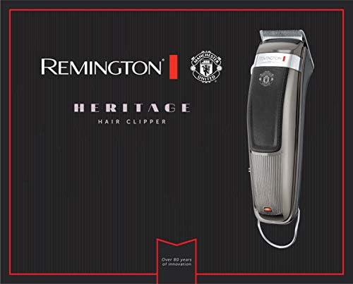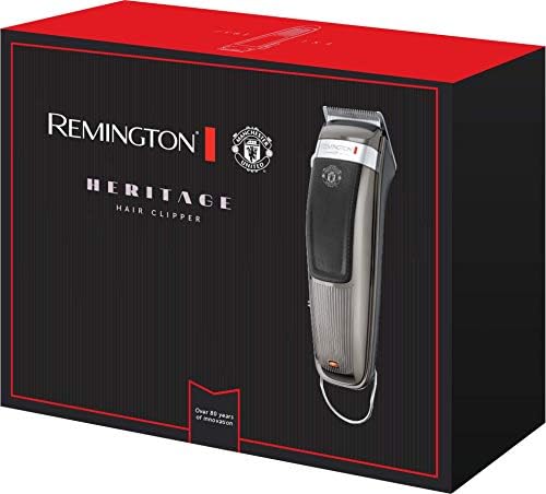 The Remington Heritage clipper Manchester United edition offers Manchester United fans a classic design, reminiscent of a bygone era and a time of legends. Inspired by Remington creation of its first electric foil shaver in 1937. This solid and robust clipper has a stylish metallic Silver finish that is classically vintage whilst incorporating the modern innovation synonymous with Remington. The hair clipper is enhanced further by the iconic Manchester United Club crest on its body that will make it a firm favourite for fans of all ages. With 6 x improved cutting performance* you can be assured of a modern finish at a variety of lengths; from 1.5mm to 25mm. Let the adjustable taper lever save you time when trimming, without the hassle of additional attachments. The heritage hair clippers are cordless with up to 60 minutes run time but if you need to trim in a hurry, it can also be used corded. Cleaning and maintaining the blades is easy because they are fully removable and washable, a cleaning brush and clipper oil are also included. The handy storage pouch and black face towel complete the package and make this sleek, sophisticated retro ideal available for the most discerning Manchester United fan. *Vs a standard Remington Hair clipper.
