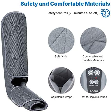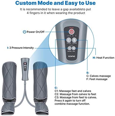 RENPHO Leg Massager with 2 Heat Levels, Compression Calf and Foot Massage, Adjustable Wraps Design for Most Size, with 5 Modes 3 Intensities, Gift for Mom Dad to Relax Leg Muscle