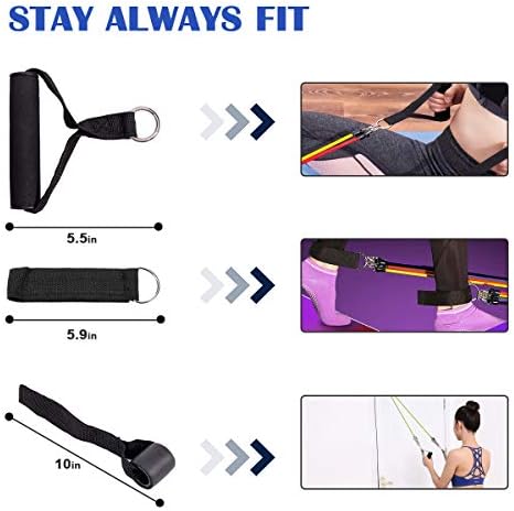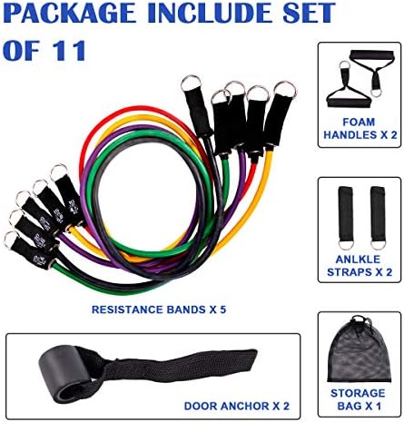 5 Resistance Bands +1 Door Anchor +2 Ankle Straps +2 Handles+1 Carrying Bag