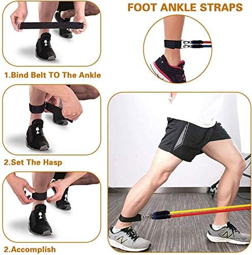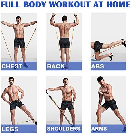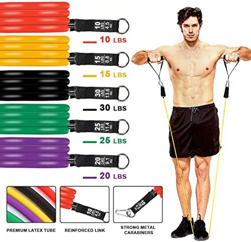✔️【5-Level Resistance Ropes】Black for 30lbs, Purple for 20lbs, Red for 10lbs, Green for 25lbs, Yellow for 15bs. You can combine any of them to a maximum resistance of 100 lbs.【Package Included】5x Elastic Resistance Bands; 1x Door Anchor; 2x Cushioned Handles; 2 x Ankle Straps; 1x Storage Bag.