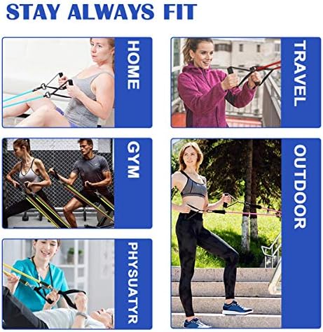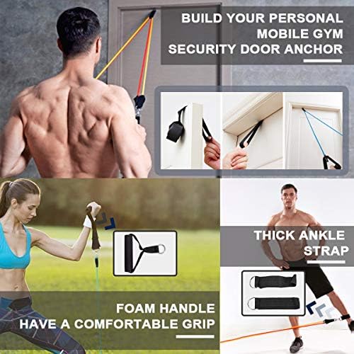 Resistance Bands Set, 11 Pcs Fitness Equipment Set Exercise Bands with Door Anchor, Handles, Storage Bag, Legs Ankle Straps Resistance Tube for Home Workouts, Physical Therapy and Resistance Training