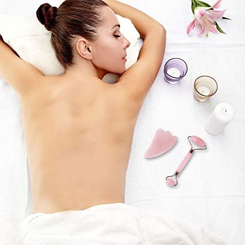 【Healthy & Smooth Massager】 Jade roller and Gua Sha has a smooth surface texture and a smooth touch feeling that never hurt your skin. The jade roller massager is suitable for the neck, chin, cheeks, forehead, nose, lips and around the eyes. Jade gua sha tool is great for massage body, neck, shoulder and face slimming. Meanwhile, they can also be used with your skincare products, such as promoting the absorption of creams.
