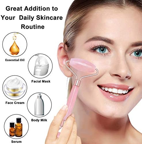 【Upgrade Design】 ❤This rose quartz face roller adopts a new improved design with stronger steel integrated frame and reinforced handles, it will last longer than other brands available on the market. ❤This crystal face roller adopts the humanized design of inserting the noiseless silicone ring at both ends. Therefore, there’s no any squeaking when you use the jade roller.