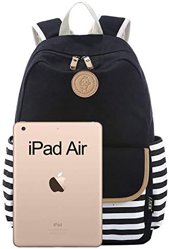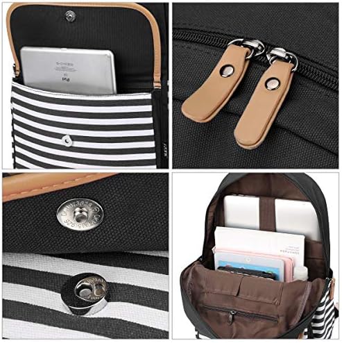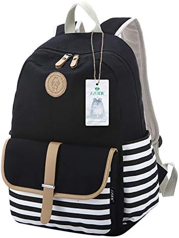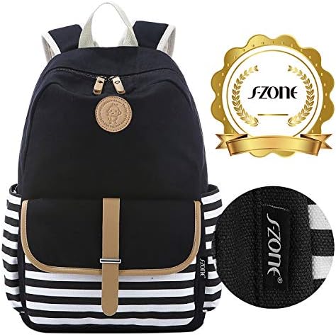 S-ZONE French Breton Nautical Striped Backpack Rucksack Marine Sailor Navy Stripy School Bags for Teenager Girls (A-Black)
