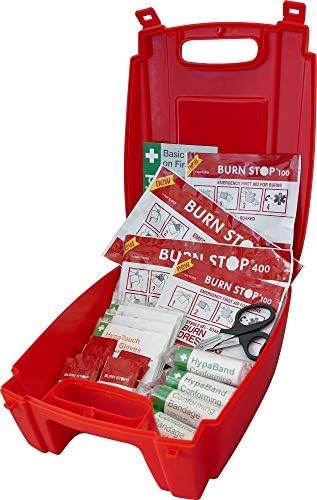 Safety First Aid Group Evolution Burn Stop Burns Kit, Large – 30 x 23 x 12 cm with HypaPlast Burn Plasters, Pack of 10 (Assorted) Bundle