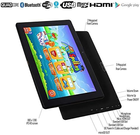 PREMIUM 10 INCH TABLET with SUPERIOR CPU – High Power MediaTek Quad core processor which boosts the multitasking abilities of the tablet. 10″ IPS display, 64 GB internal storage, and up to 8 hours of battery life. Supports SD cards up to 128 gigabytes. Bluetooth, GPS and micro-USB port provides all the connectivity options you want.