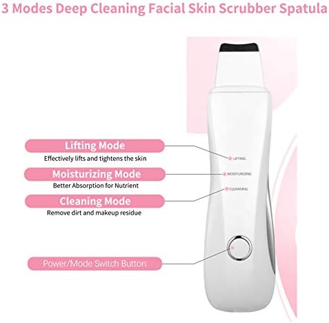 ❤❤3 Mode Adjustable: Cleaning: face spatula deep clean pore remove blackhead acne without expanding pores, make your skin look smoother. Moisturizing:skin care products such as beauty lotion can penetrate directly into the bottom of the muscle under the guidance of ultrasound and ion. Lifting: compared with the traditional palm pat, the beauty device is more conducive to the double absorption of beauty lotion, facial essence and cream, and tighten the skin at the same time.