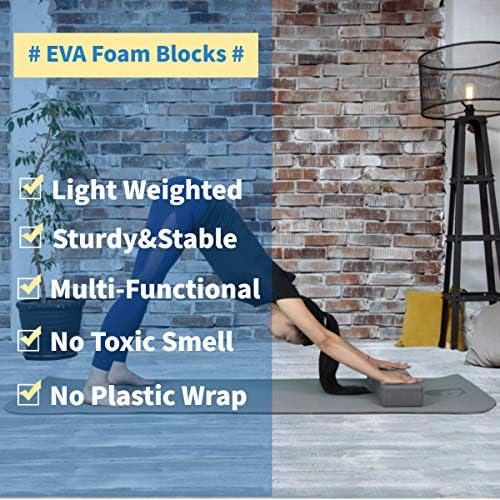Slim Panda Foam/Cork Yoga Block Set of 2 Firm Sturdy Non Slip EVA & Cork Wood Eco Blocks with Cover Bag, 9x6x3 Inch, For Yoga, Pilates, Meditation Home Gym- Purple, Grey, Cork