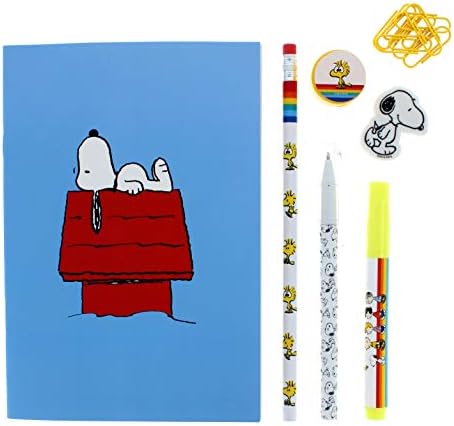 💤 SCHOOL SET CONTENTS: This super set contains lots of cool things that Snoopy fans are sure to love. Each pack contains a scribble notebook, paperclips, an eraser, a sharpener, a highlighter, a ballpoint pen and a drawing pencil. All items come in a zip locked clear pouch that is great for doubling up as a pencil case.
