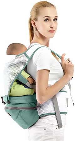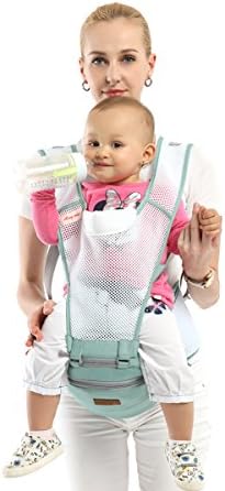 SONARIN 360°Breathable Premium Hipseat Baby Carrier, Ergonomic, Mummy Bag,100% Cotton, Breathable mesh Backing, Easy to Carry and Easy Mom,Adapted to Your Child’s Growing(Green)