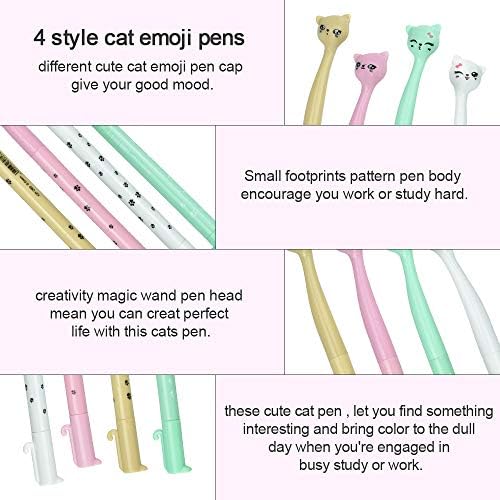 [Package included]- Package include 4 style cat emoji pens , 4 colors green , white , pink , khaki . 3 pcs/colors , total 12 pcs cute pen with with 0.5 mm refills , enough meet your requires for study and work .