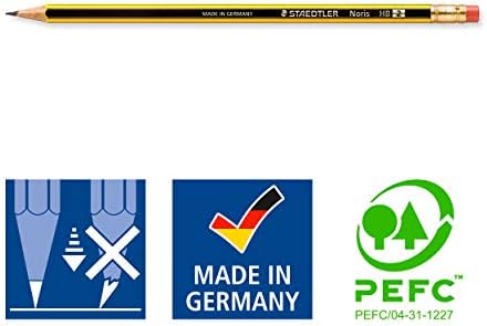 The Staedtler pencil Noris is a high quality lead pencil with an eraser tip. It is ideal for writing, drawing and sketching. The pencil is unbelievably break-resistant through a special lead formulation and a bonded lead. The pencil has a lead diameter of 2 mm.